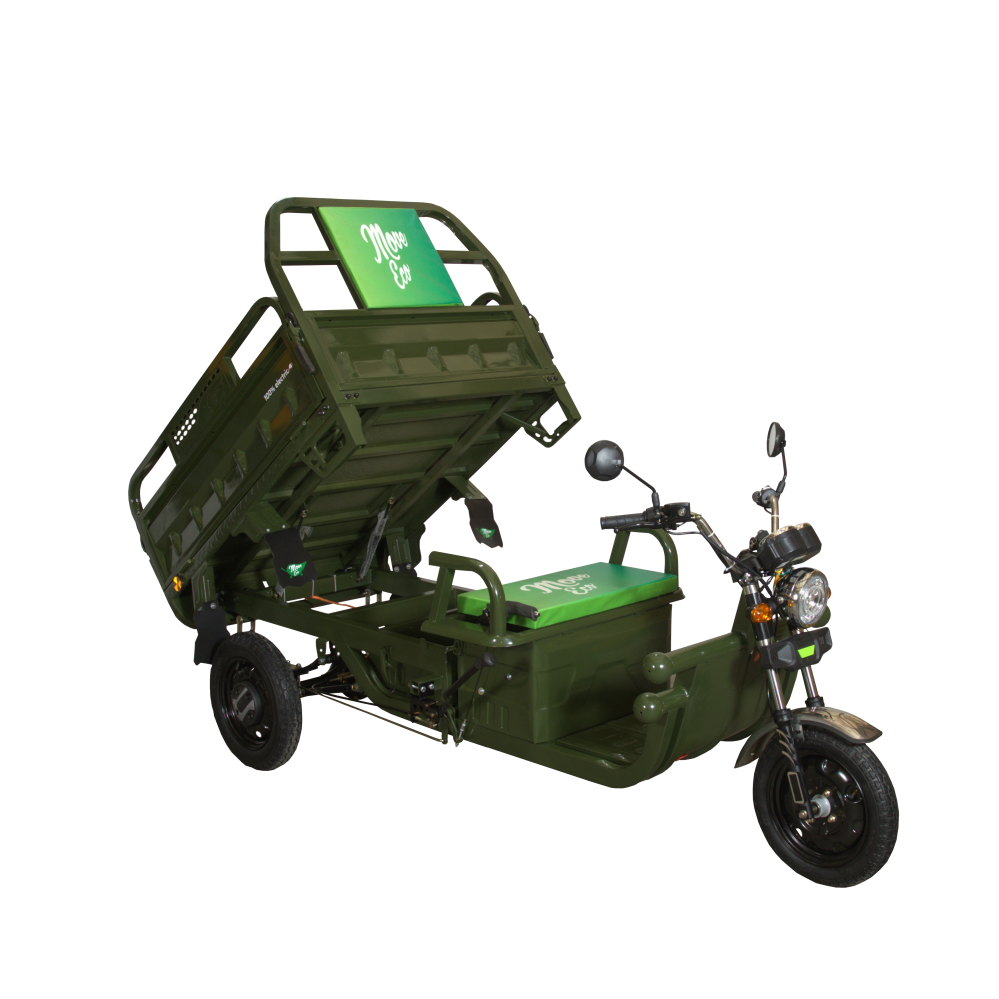 Le tricycle électrique certifié Cargo 500 Move Eco est équipé d’un moteur sans balais à courant continu (DC) de 1000 W situé directement sur le différentiel de transmission et la transmission sur l’essieu arrière. Si vous utilisez le tricycle avec une charge ou lors de la montée d’une pente, il est nécessaire d’utiliser le levier de vitesse pour une utilisation efficace, ce levier de vitesse peut être facilement actionné avec le levier situé sur le côté droit du tricycle. Les freins sont des freins à tambour et des freins à commande mécanique.